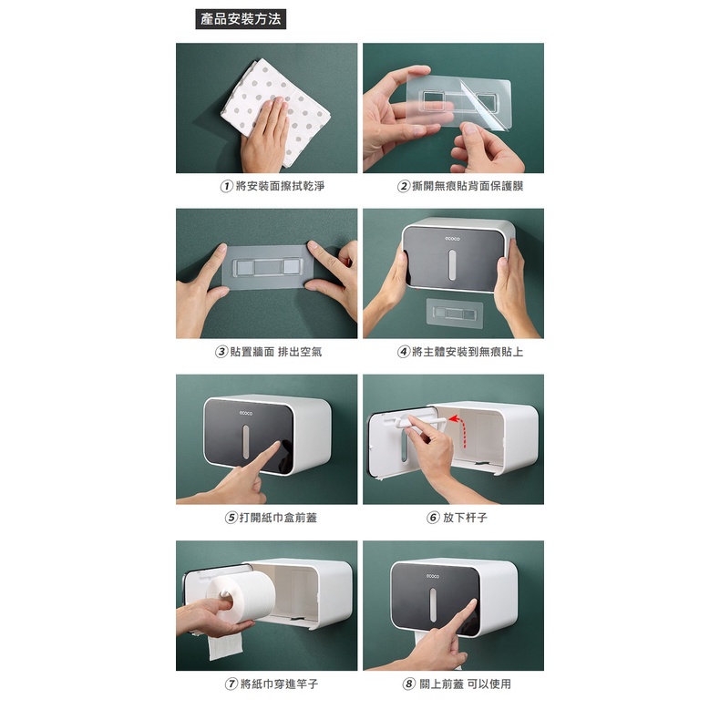 KOTI日安生活 簡約防水免打孔無痕壁掛式衛生紙架