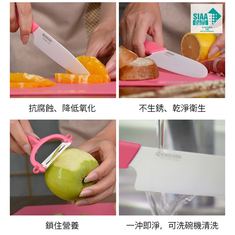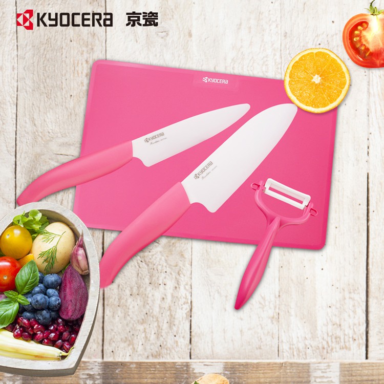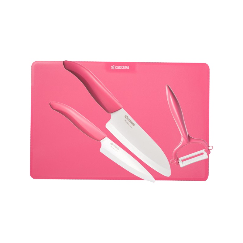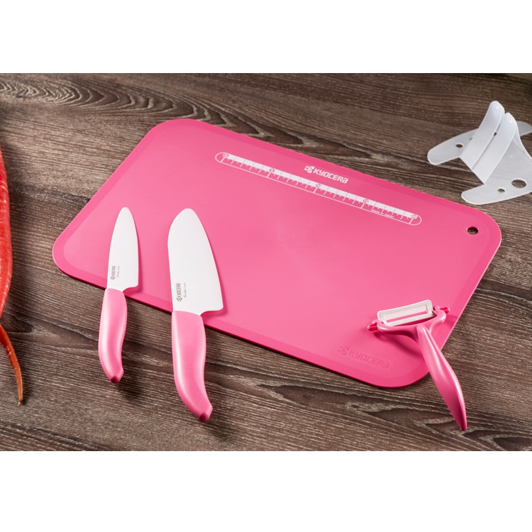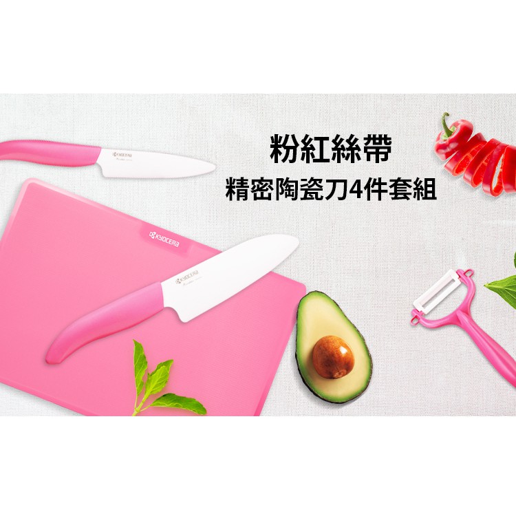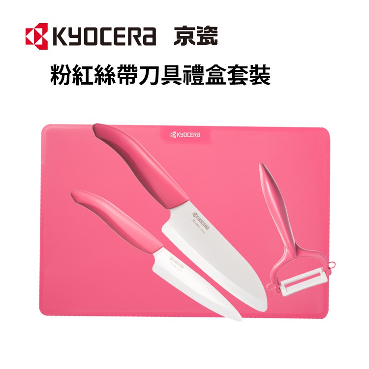 KYOCERA 日本京瓷 粉紅絲帶刀具禮盒套裝 [四件組 - 抗菌陶瓷刀 + 水果刀 + 削皮器 + 砧板]