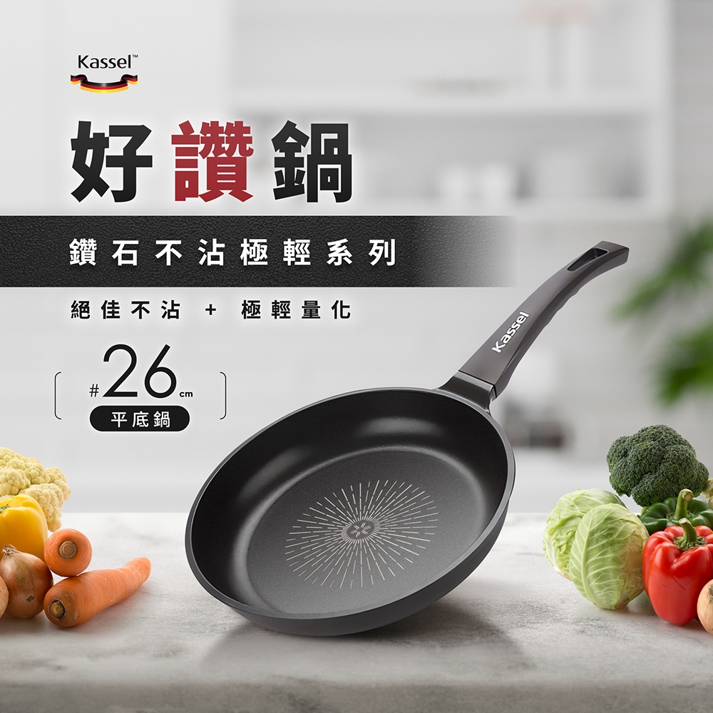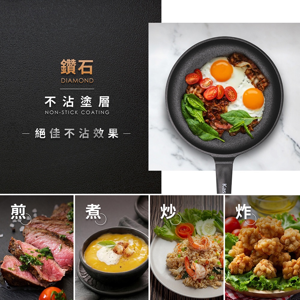 Kassel 鑽石超導熱不沾平底雙鍋組-30cm+26cm(瓦斯爐、IH爐可用鍋、不挑爐具)