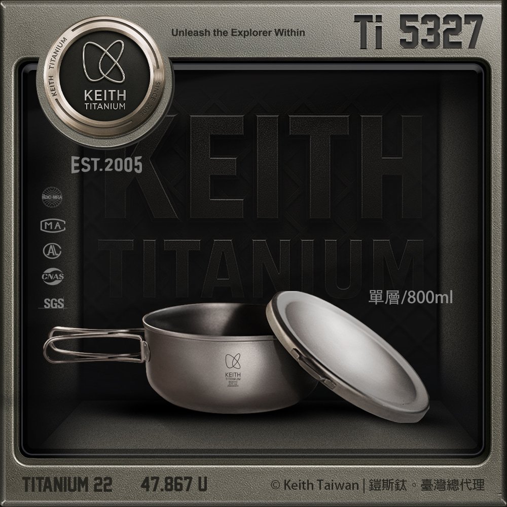 Keith 鎧斯純鈦輕量環保圓形便當飯盒 1200ml Ti5329 登山露營鈦碗 戶外抗菌炊具 健康學生餐盒 便當盒