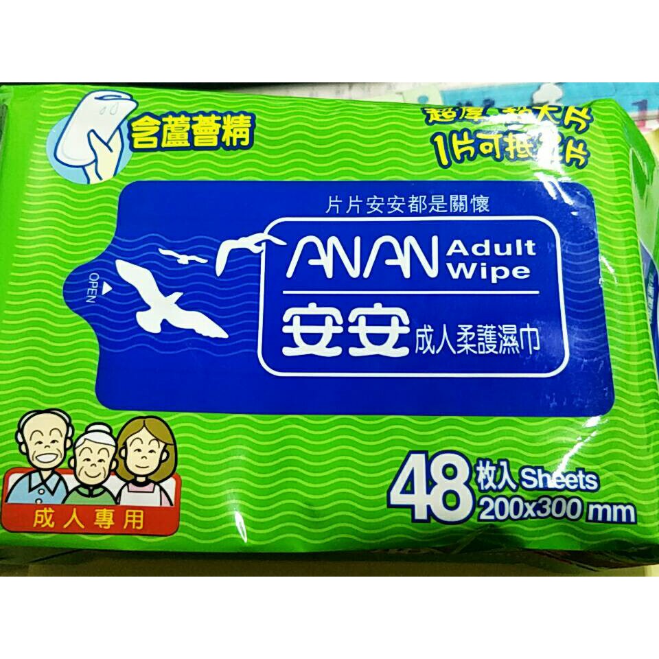 【安安】 成人柔護濕巾 加大型 48抽(20x30cm)(超商限取8包)