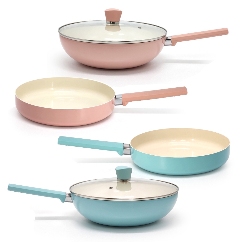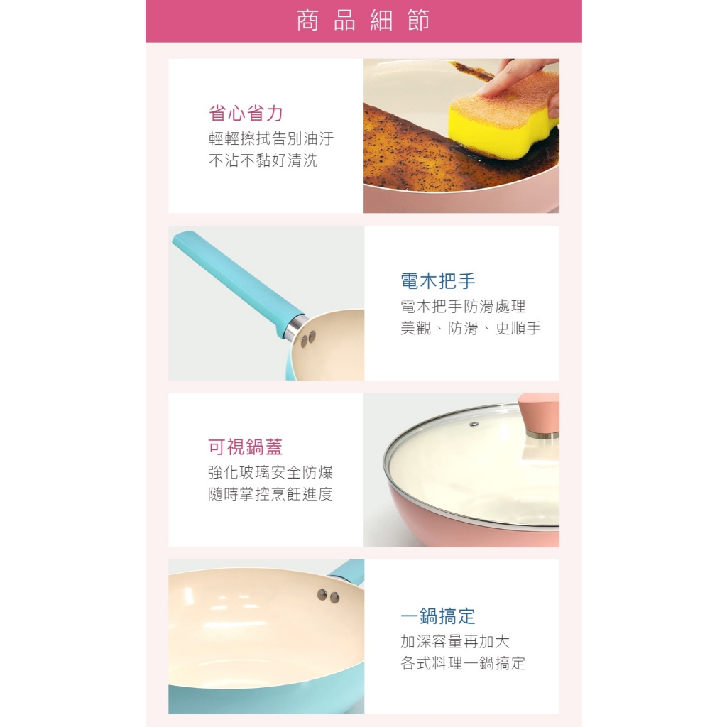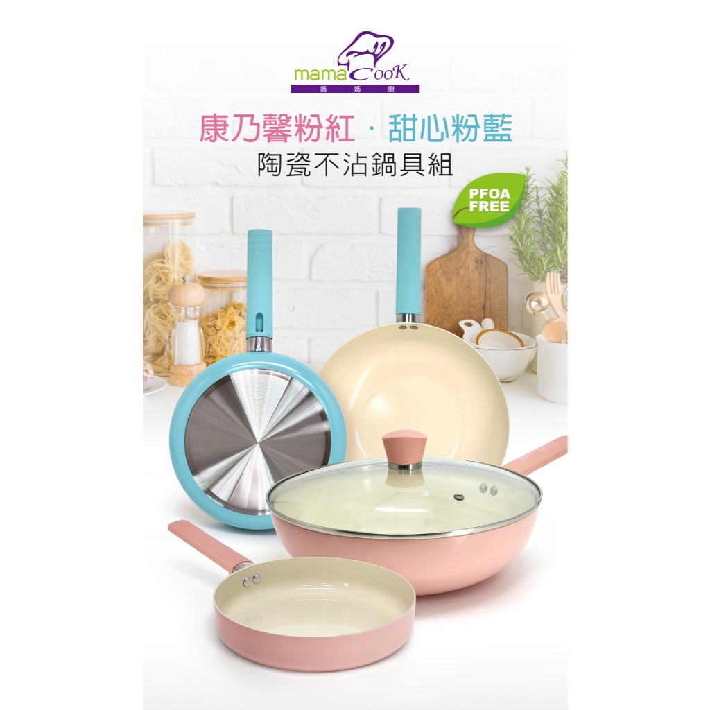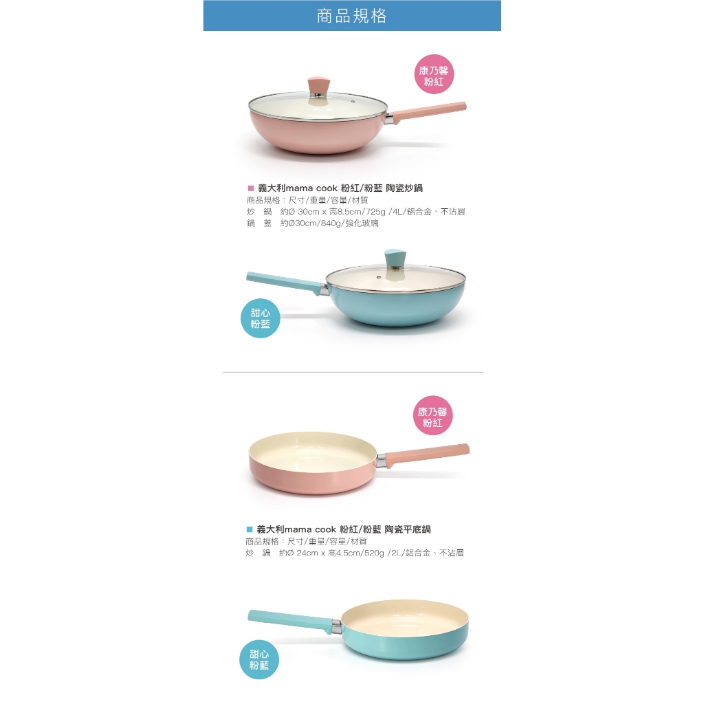 【mama cook】粉彩甜心陶瓷不沾鍋具組(30炒鍋/24平底鍋)/可任選