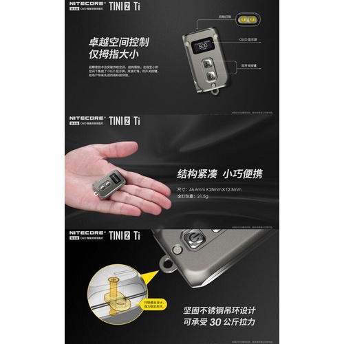 【山道具屋】NITECORE TINI2 SS 不銹鋼/ Ti 鈦合金 500流明 雙核OLED 鑰匙燈