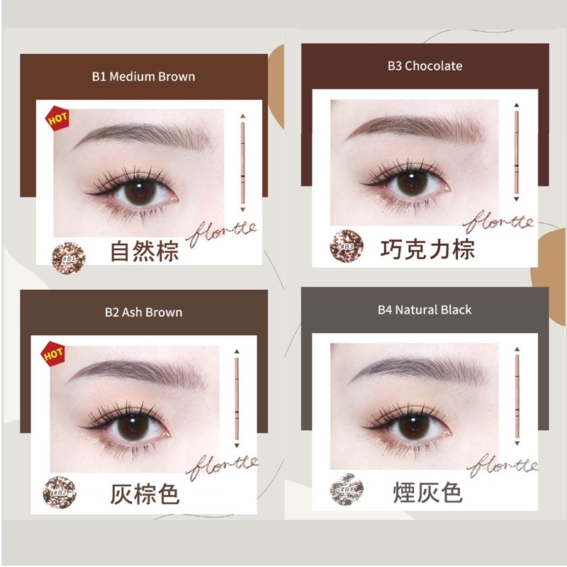 官方正品FLORTTE 花洛莉亞 極細雙頭眉筆 細眉筆 防水眉筆 防汗眉筆