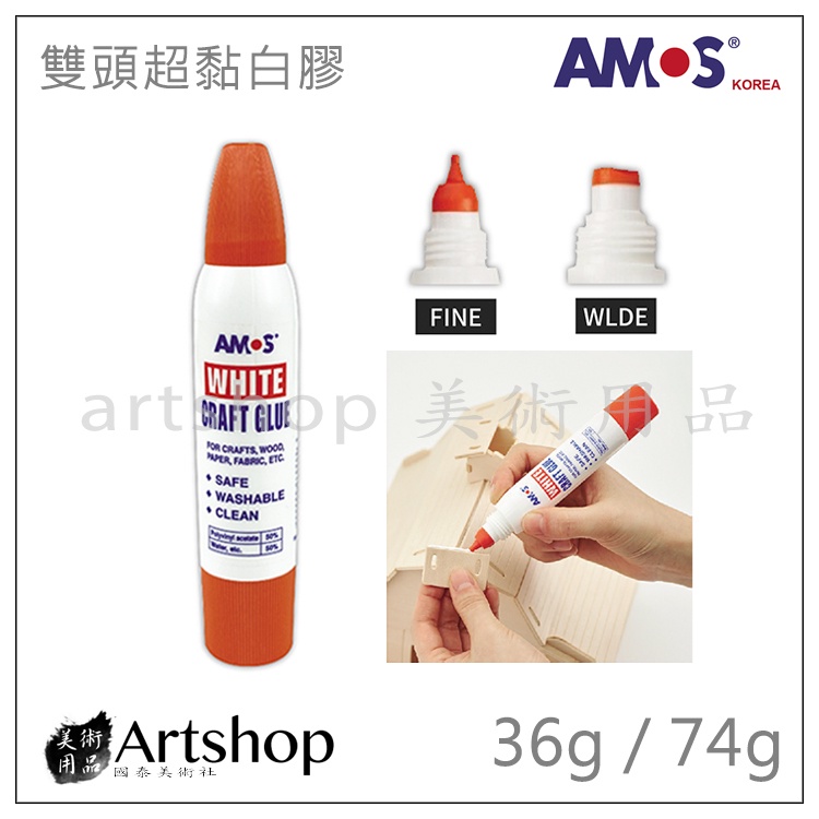 【Artshop美術用品】韓國 AMOS 雙頭超黏白膠 36g / 74g 兩種容量可選