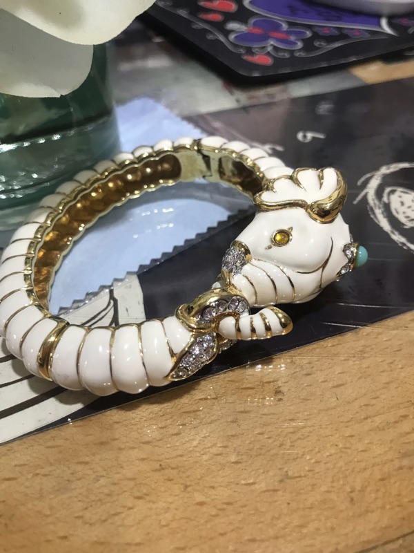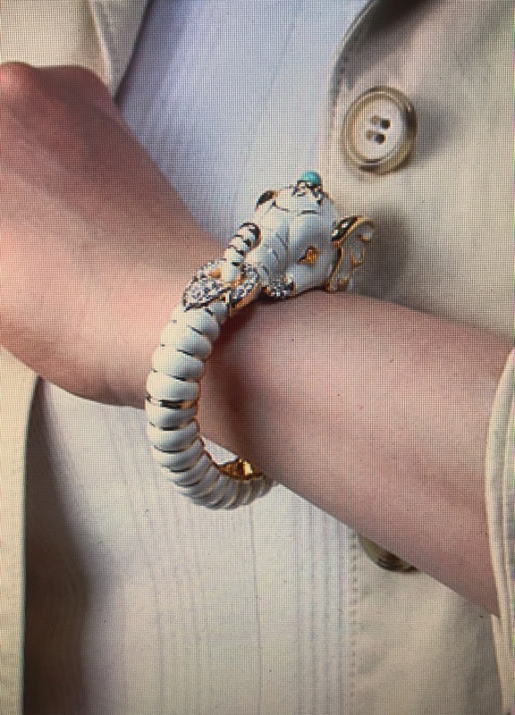 Kenneth Jay Lane 好萊塢巨星最愛 孫芸芸 大象手環 白色 鑲水晶華麗搪瓷