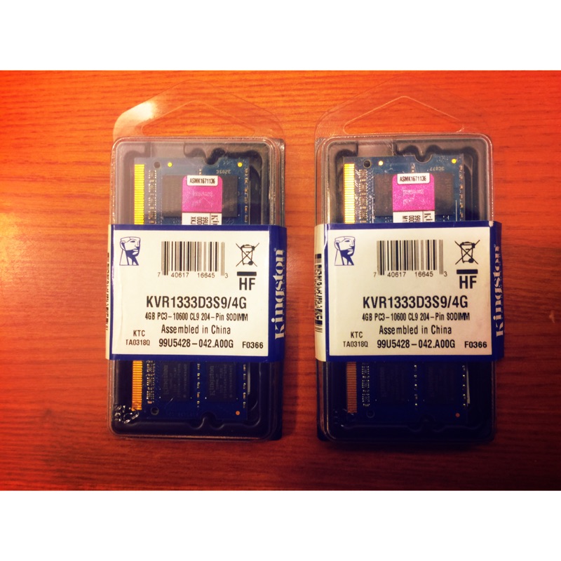 Kingston 金士頓 筆記型記憶體 DDR3 1333 4G x2 sodimm