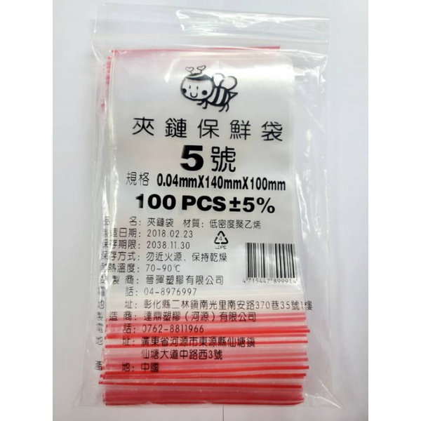 夾鏈保鮮袋 5號:0.04*140*100(mm)