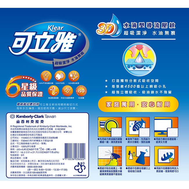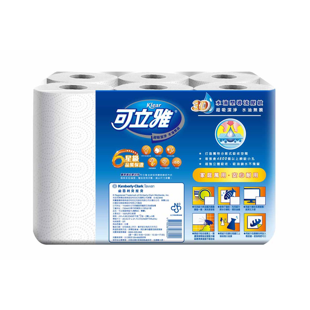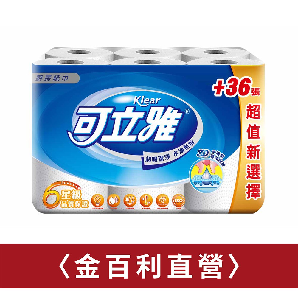 【Klear 可立雅】廚房紙巾(60+6)張36卷/箱 (箱購)