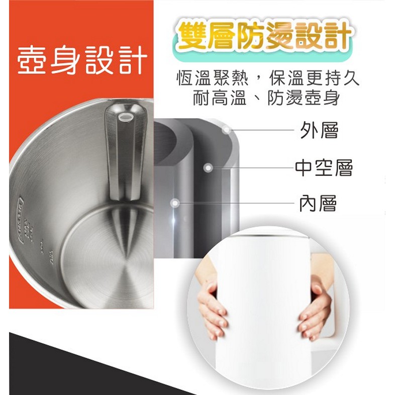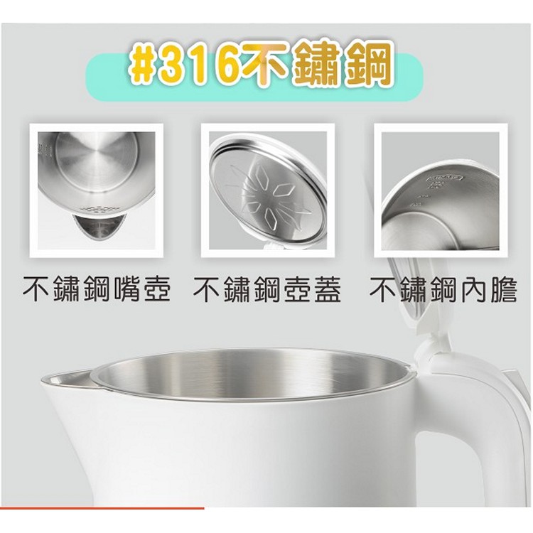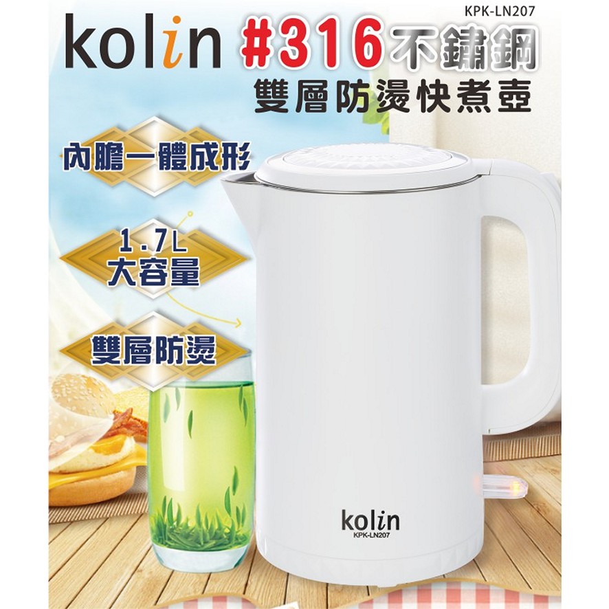 Kolin歌林1.7公升316不鏽鋼雙層防燙快煮壺 KPK-LN207