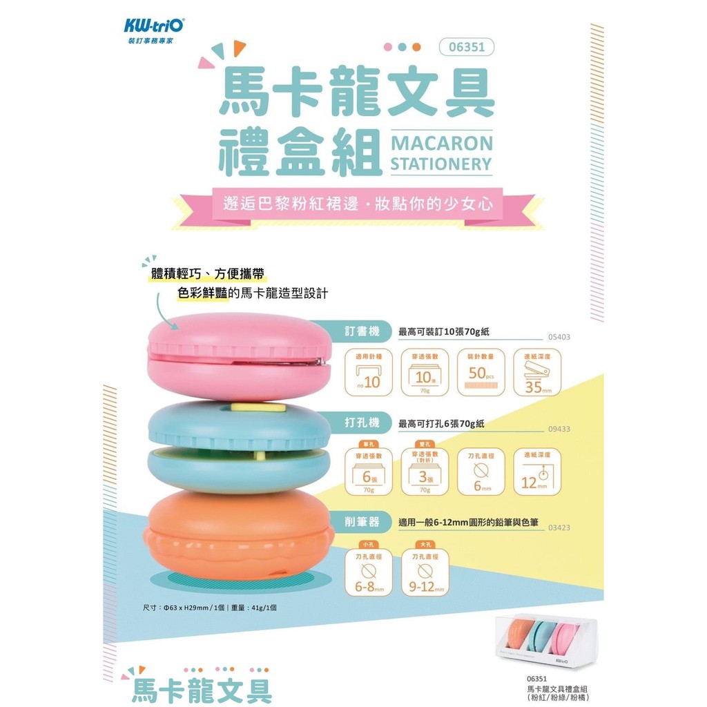 Kw-trio KW 06351 馬卡龍系列文具組(內附:訂書機x1 打孔機x1 削筆器1)~可愛療癒系文具組 送禮自用