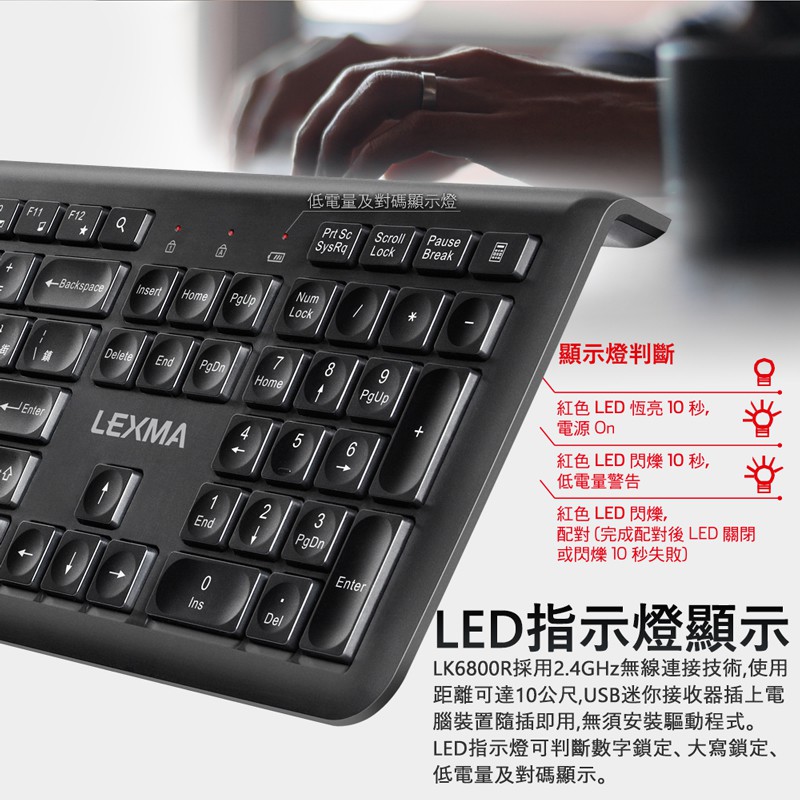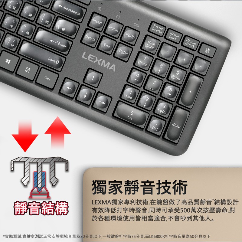 LEXMA LK6800R 無線 靜音 鍵盤