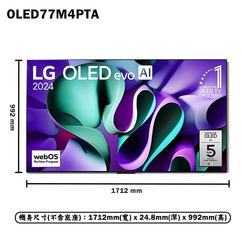 LG樂金【OLED77M4PTA】77吋OLED 4K智慧顯示器 OLED77M4PTA(含基本安裝)