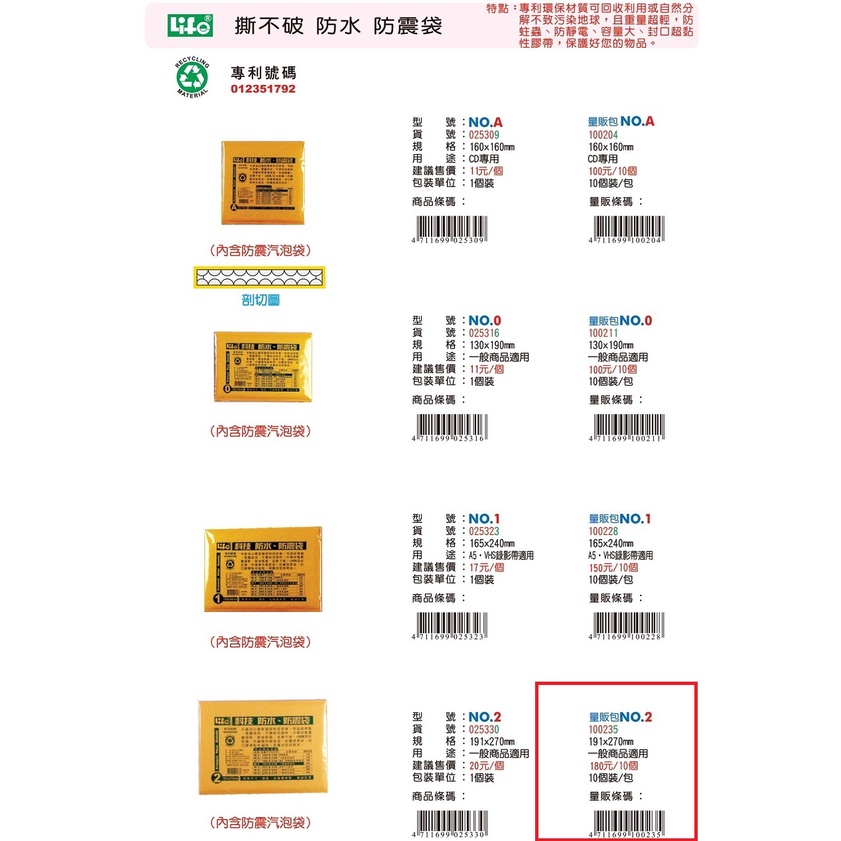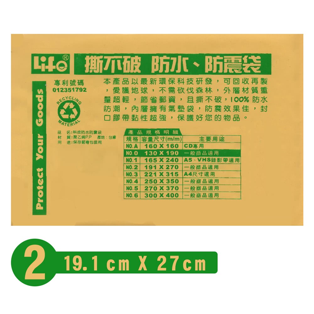 LIFE 徠福 NO.2 撕不破 防震袋 氣泡袋 量販包 (防水) (10個入)
