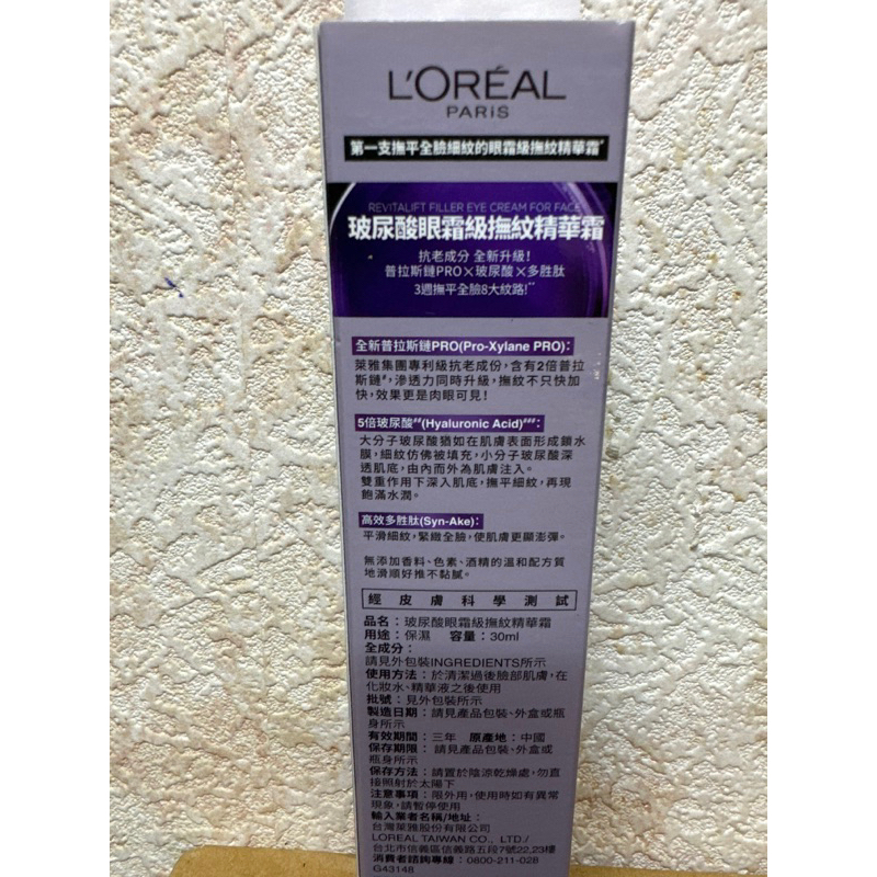 LOREAL Paris 巴黎萊雅 全新升級玻尿酸眼霜級撫紋精華霜Pro版 紫熨斗