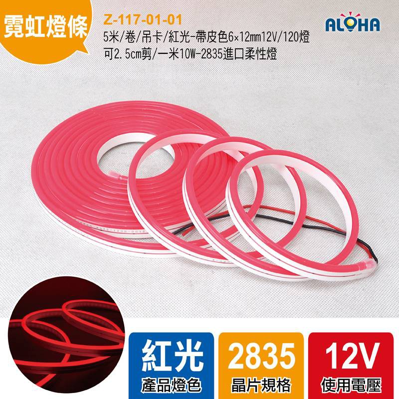 Led柔性霓虹燈帶 燈條 5米/卷 紅光-帶皮色6×12mm/12V/120燈/可2.5cm剪 進口柔性燈條