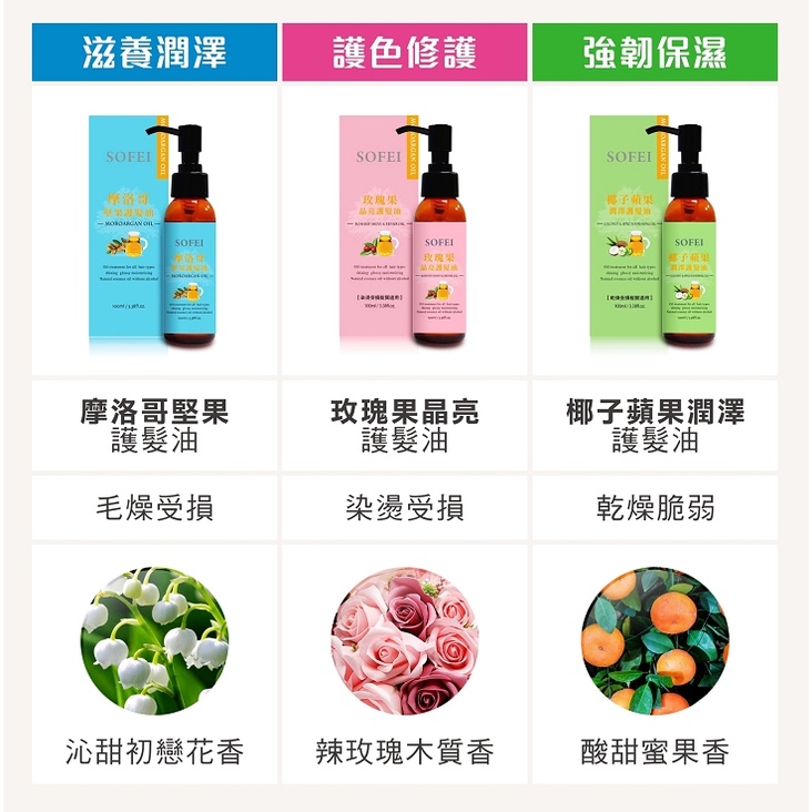 舒妃 免沖洗👍摩洛哥堅果/玫瑰果晶亮/椰子蘋果潤澤護髮油 100ML