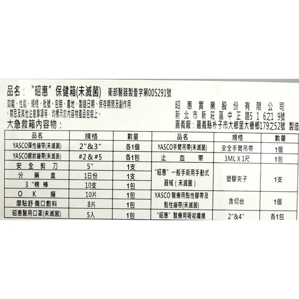 YASCO 昭惠保健箱急救箱 (大型箱) 含醫材