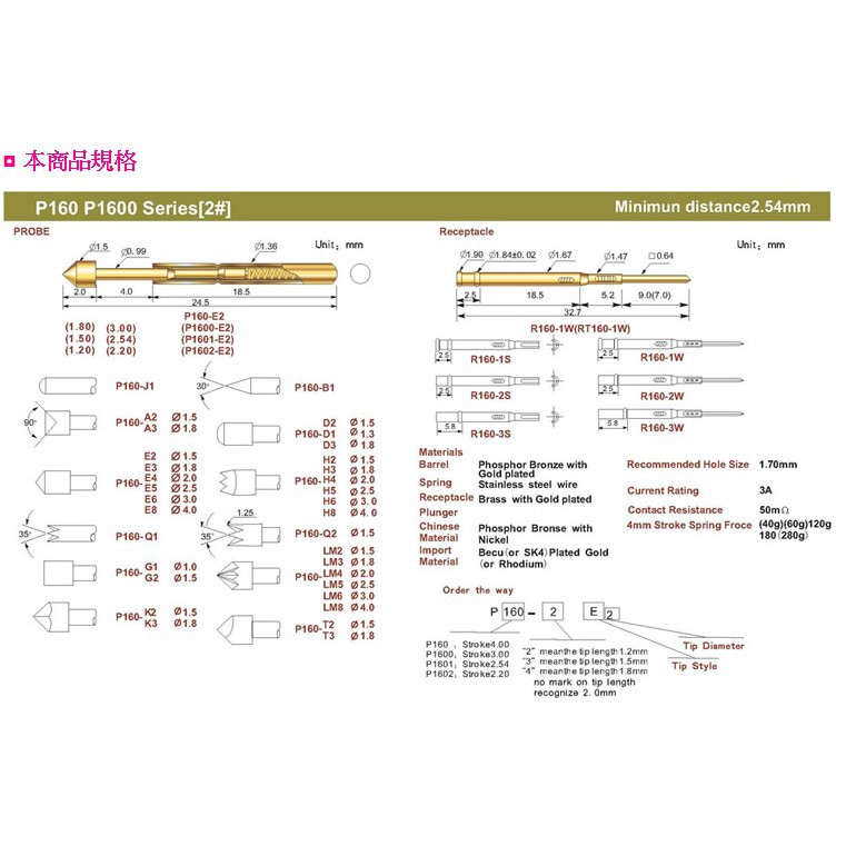 探針 P160-H3 (20PCS/包) 大洋國際電子