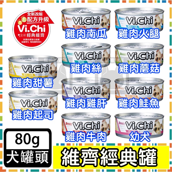 維齊 Vi.Chi 經典犬罐 80g 牛肉 起司 雞肝 雞肉絲 南瓜 蘑菇 幼犬專用 鮭魚 甜薯 火腿 狗罐頭
