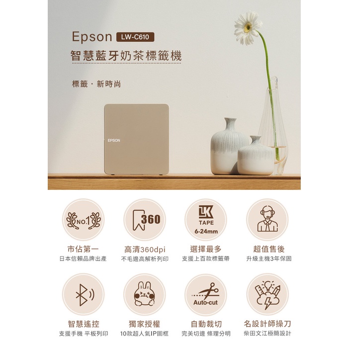 。OA小舖。保固兩年含稅Epson LW-C610 智慧藍牙奶茶 優於LW-C410 LW-600P C410 600P
