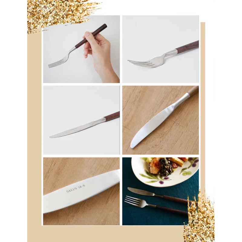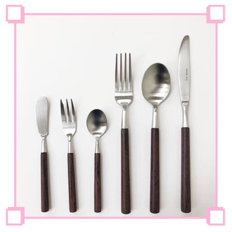 日本🇯🇵 新瀉 SALUS 黑檀木 餐刀 餐叉 甜點匙 蛋糕叉 茶匙 抹刀 天然木餐具 木柄 霧面 不銹鋼餐具