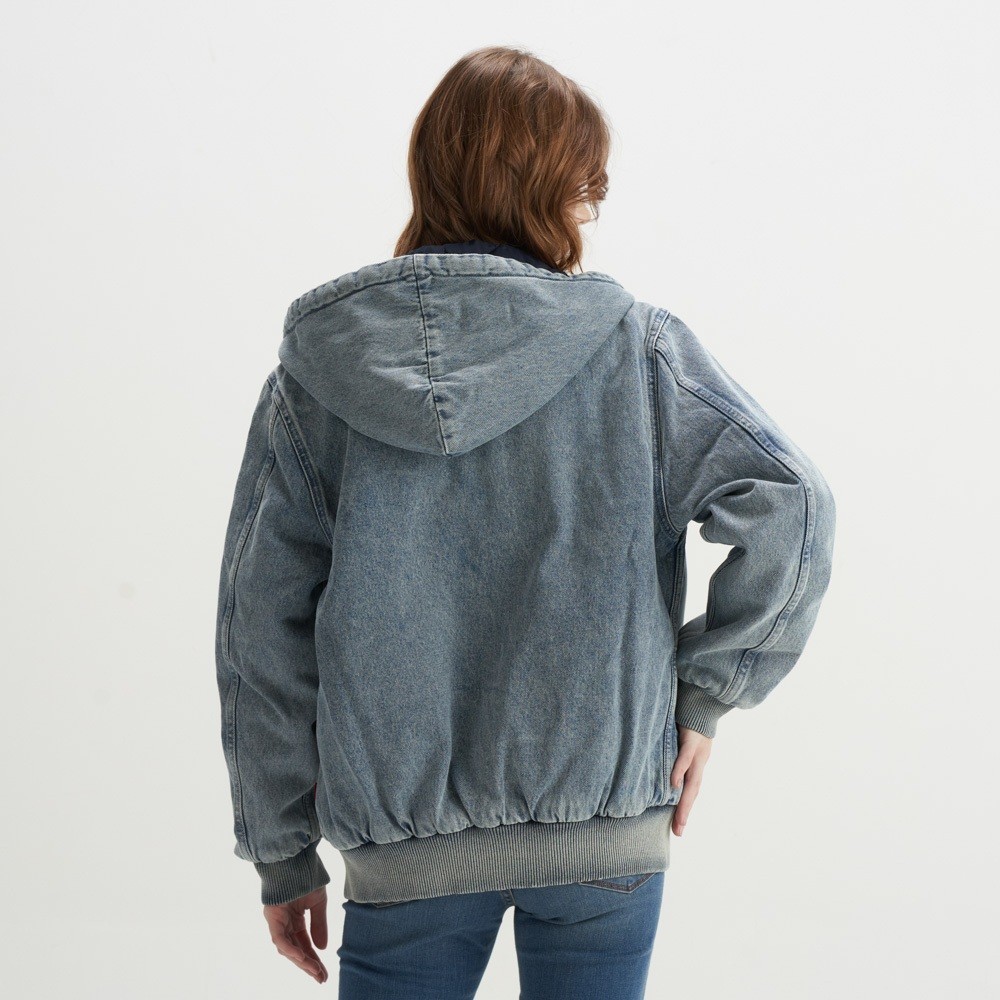 Levis 男女同款 牛仔鋪棉連帽外套 / 中藍染石洗 熱賣單品 A3222-0000