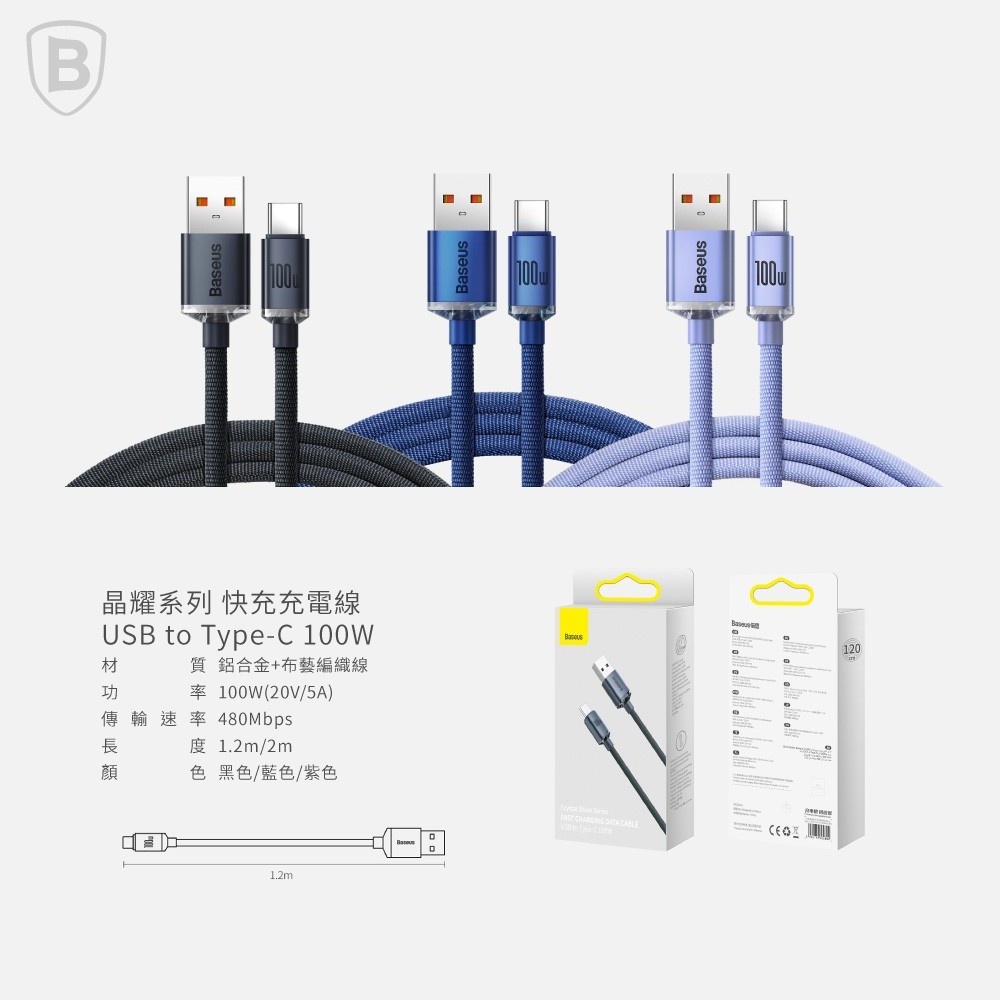 Baseus▸倍思 晶耀系列 Type-C快充數據線(100W) 充電線 USB轉Tpye-C(不支援i15以上)