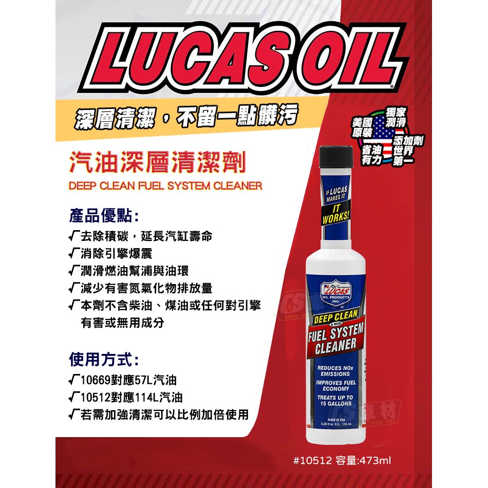 CS車材 美國原裝進口 LUCAS PEA 汽油深層清潔劑 155/473mL 10669/10512 消除引擎爆震