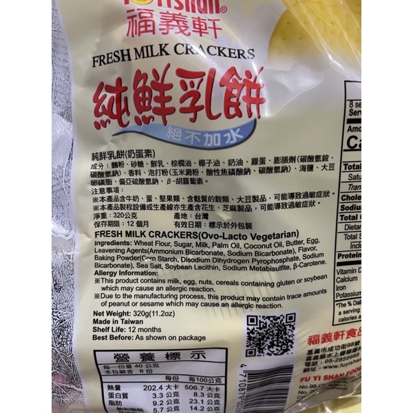 九龍 (附發票)福義軒 純鮮乳餅 320公克