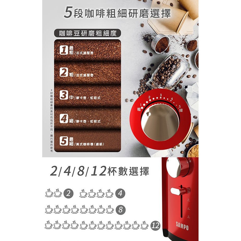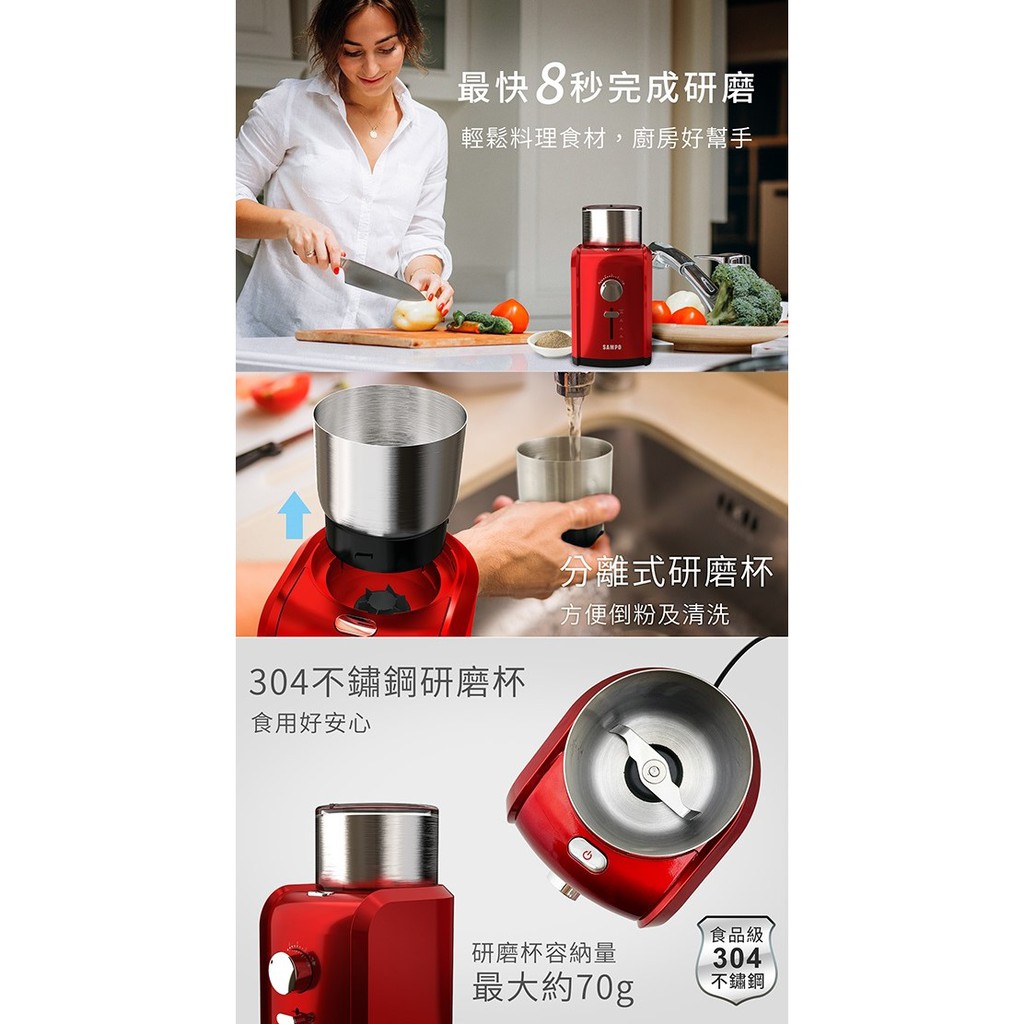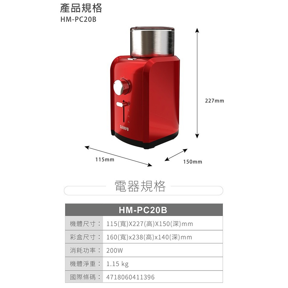 SAMPO 聲寶- 可調式自動咖啡研磨機 HM-PC20B 廠商直送