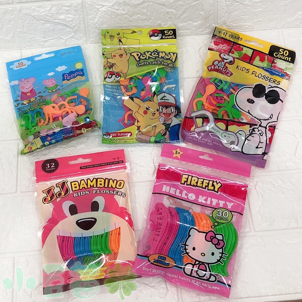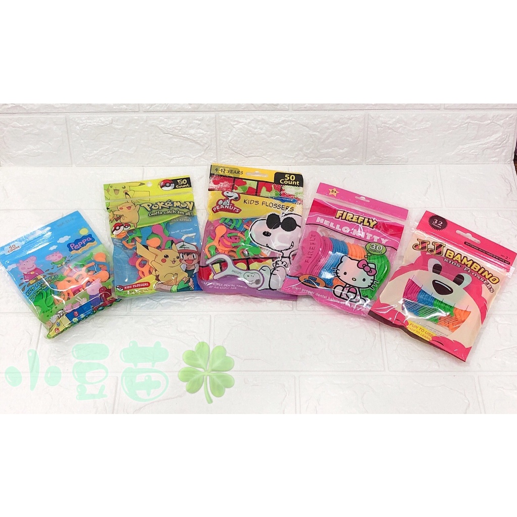 兒童安全造型牙線 兒童牙線 Pokemon精靈寶可夢 史努比 佩佩豬 KITTY JJBAMBINO【公司貨】 小豆苗