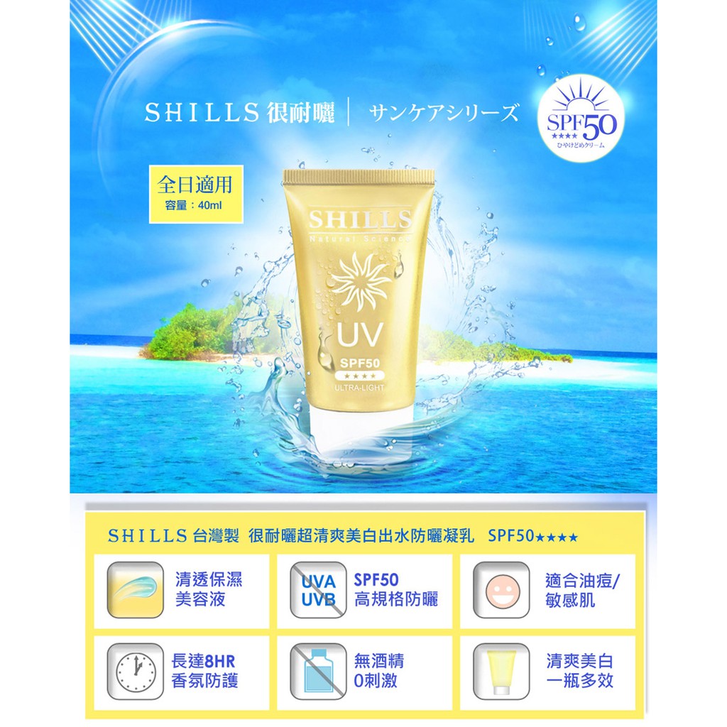 防曬乳 spf50 舒兒絲 SHILLS 很耐曬超清爽防曬凝乳 40ml 防曬 防曬乳(全身適用)