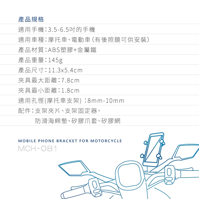 含稅全新原廠保固一年KINYO 機車用大尺寸X金屬夾式360度旋轉防水防塵手機夾(MCH-081)