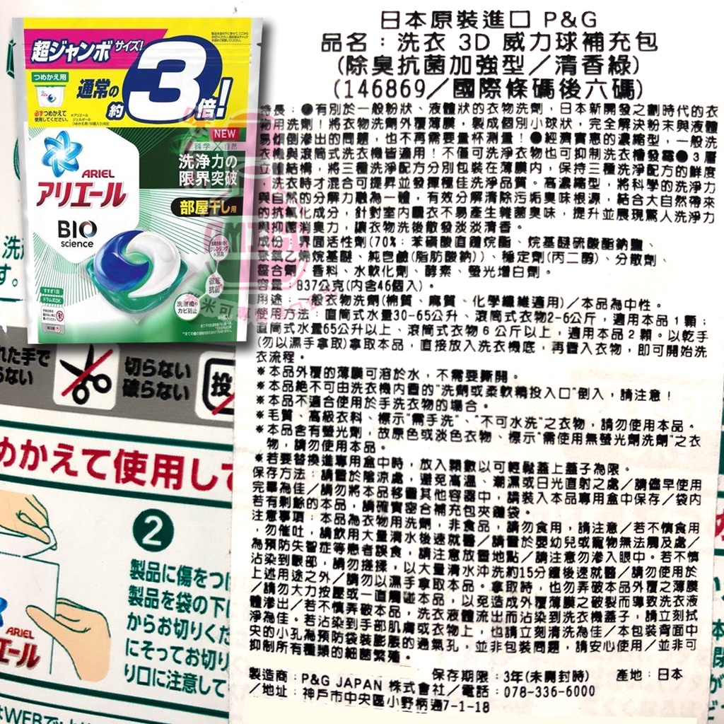 日本P&G寶僑ARIEL洗衣球 3D/4D(3倍 / 3.3倍)/BOLD三合一洗衣膠囊洗衣球 補充包【AMICO】