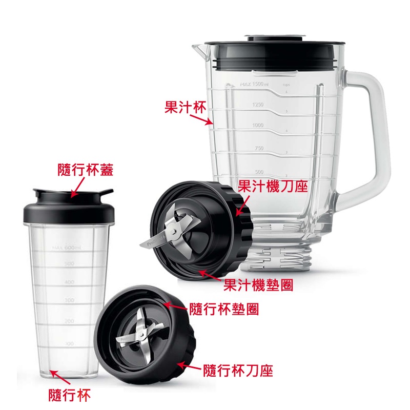 PHILIPS 飛利浦 果汁機專用配件/耗材 果汁杯 / 刀座 / 隨行杯 / 墊圈 適用機型 : HR3556