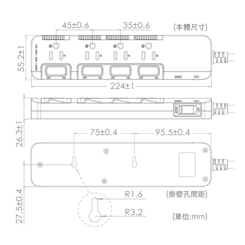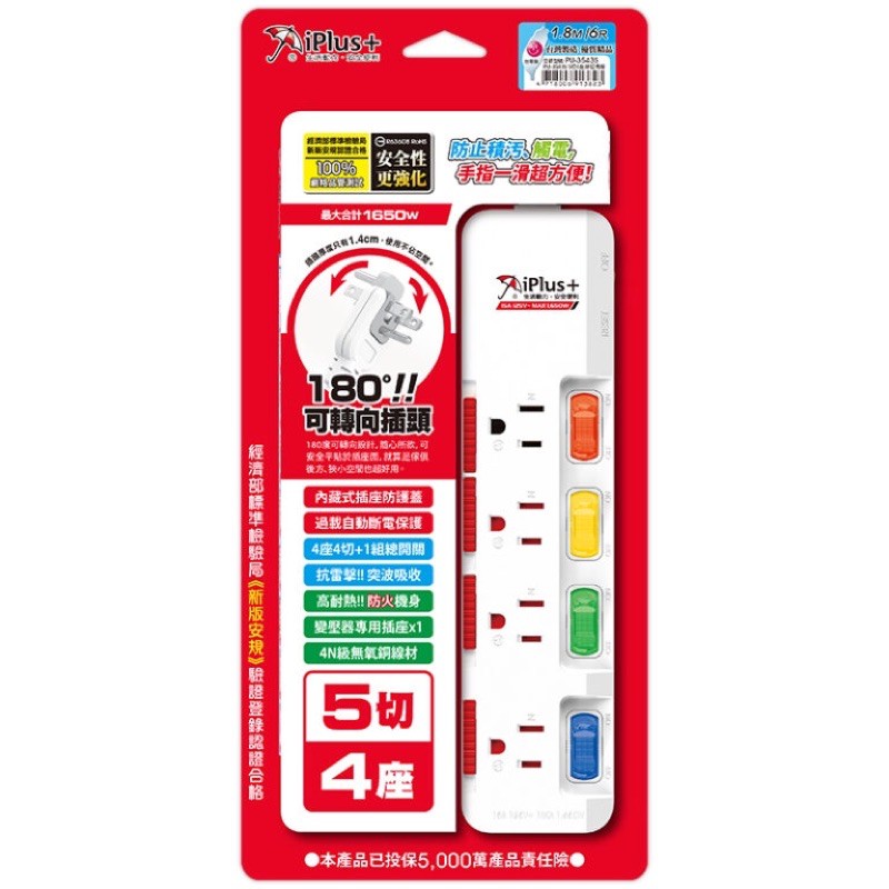 iPlus+ 保護傘 5切4座3P延長線 PU-3543S
