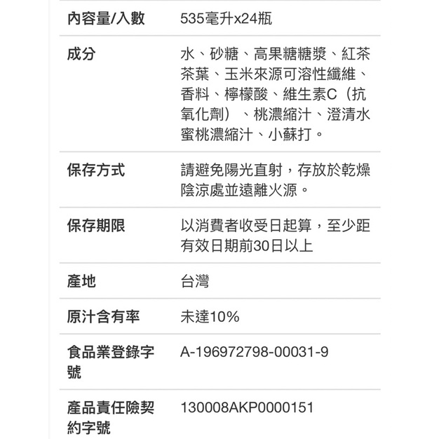M代購 免運費 好市多Costco Ito-En 伊藤園 Teas' Tea 蜜桃紅茶 535毫升 X 24瓶