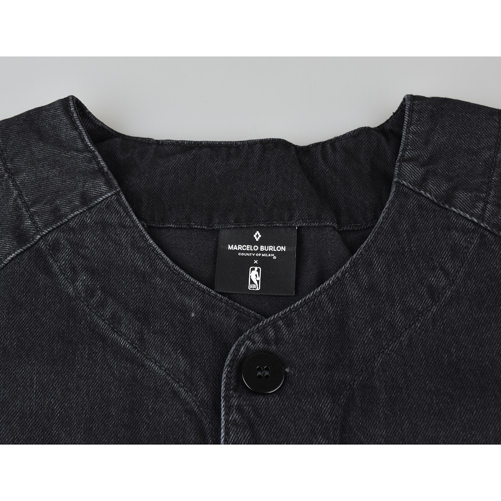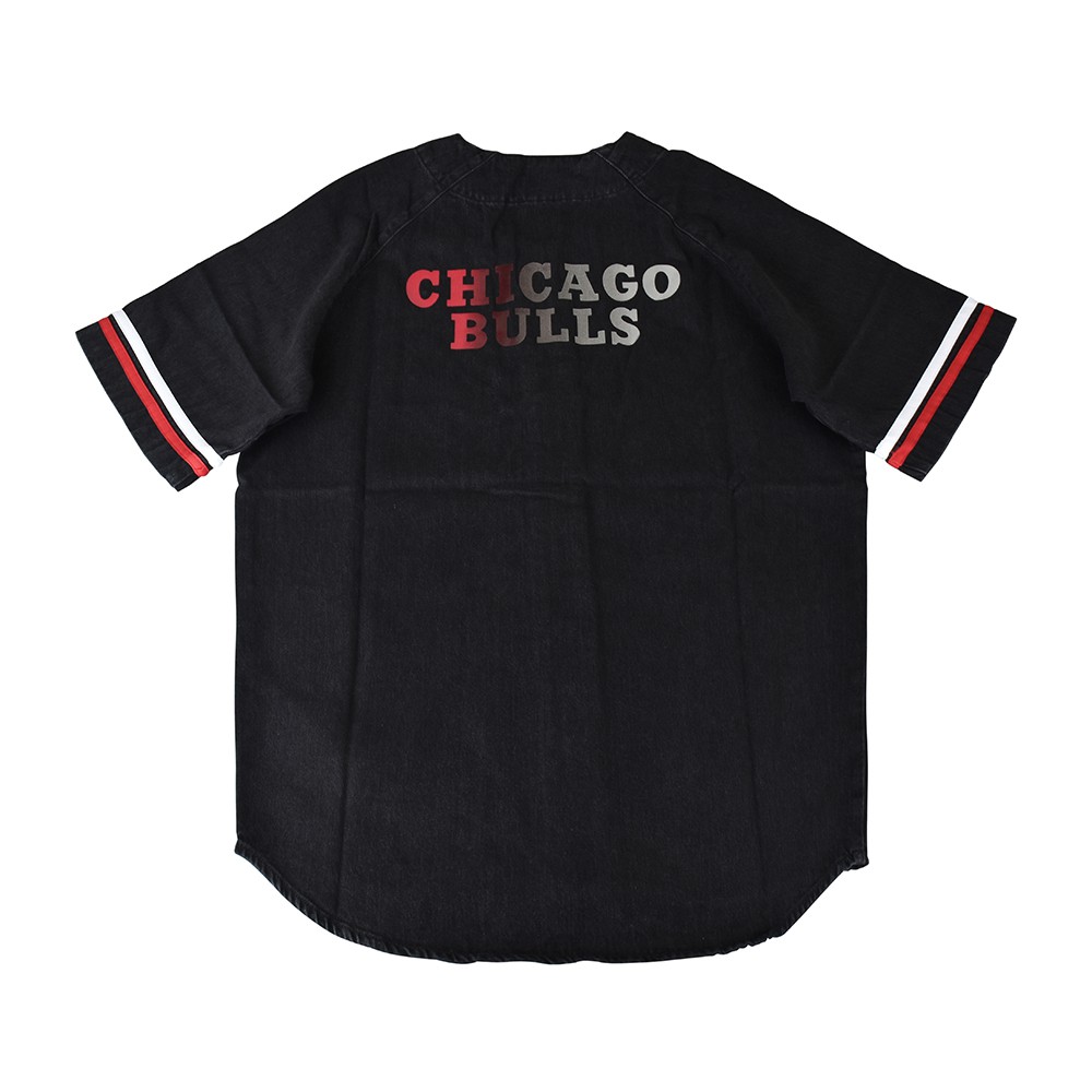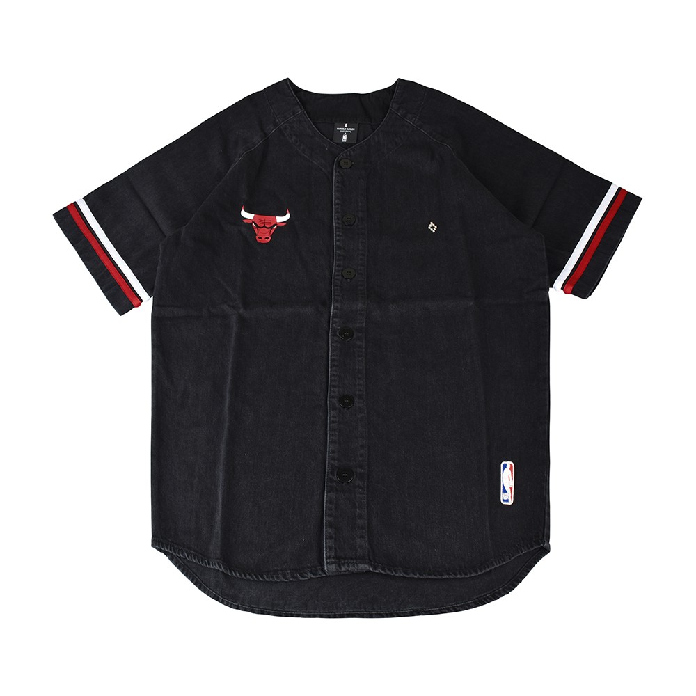 MARCELO BURLON X NBA 金屬LOGO芝加哥公牛隊造型厚磅純棉短袖牛仔球衣(男款/黑)