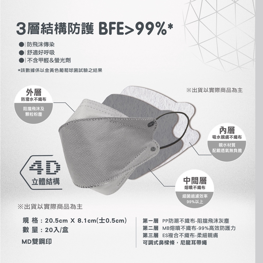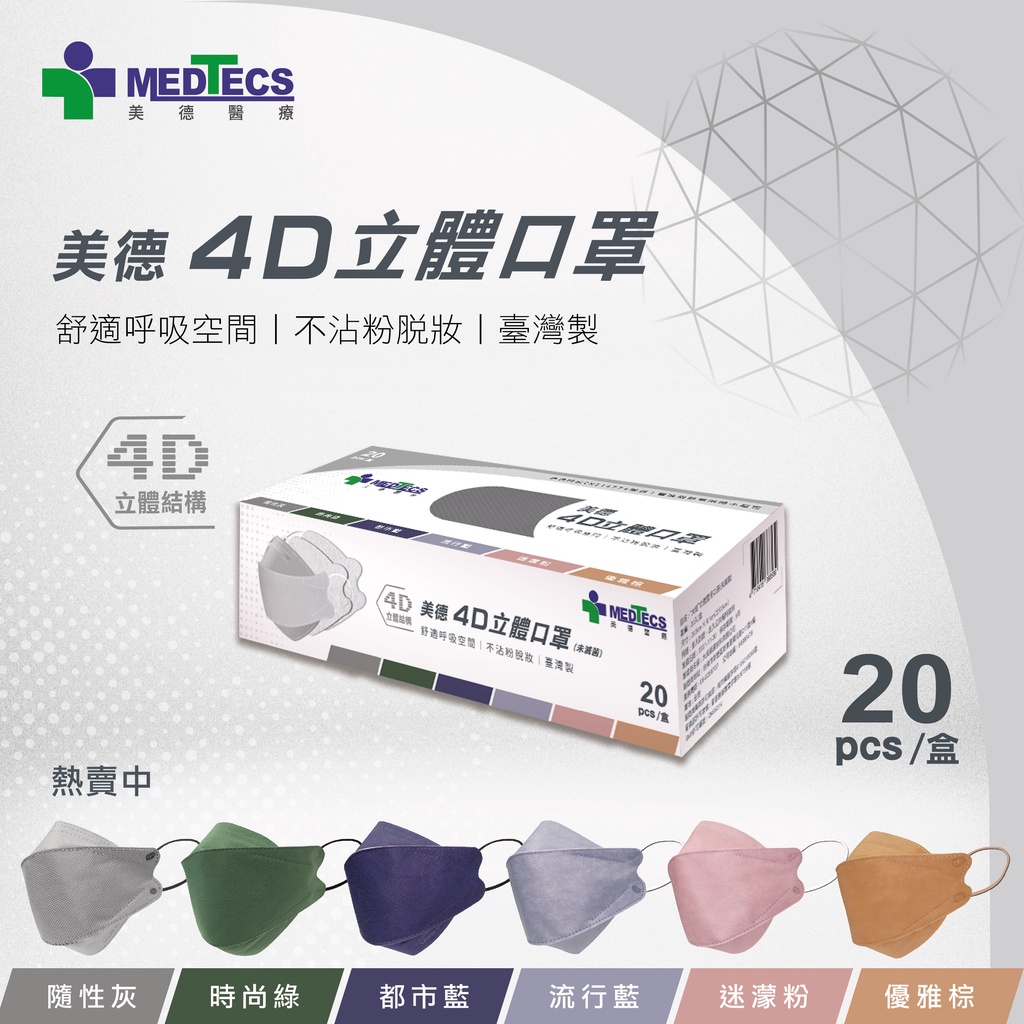 MEDTECS 美德醫療 Face Mask 4D立體口罩 一盒20入 (七色可選)