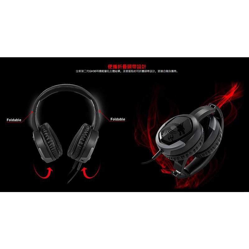 MSI 微星 IMMERSE GH30 V2 耳罩式電競耳機/有線/耳麥/輕量化/線控
