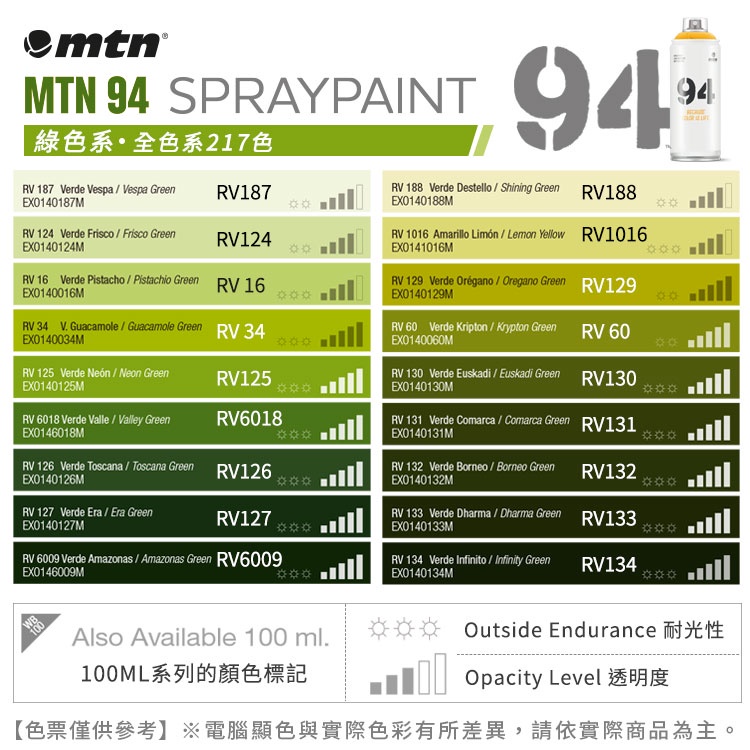 MTN西班牙蒙大拿 94系列 噴漆 400ml 綠色系 單色 彩色消光噴漆『響ART』