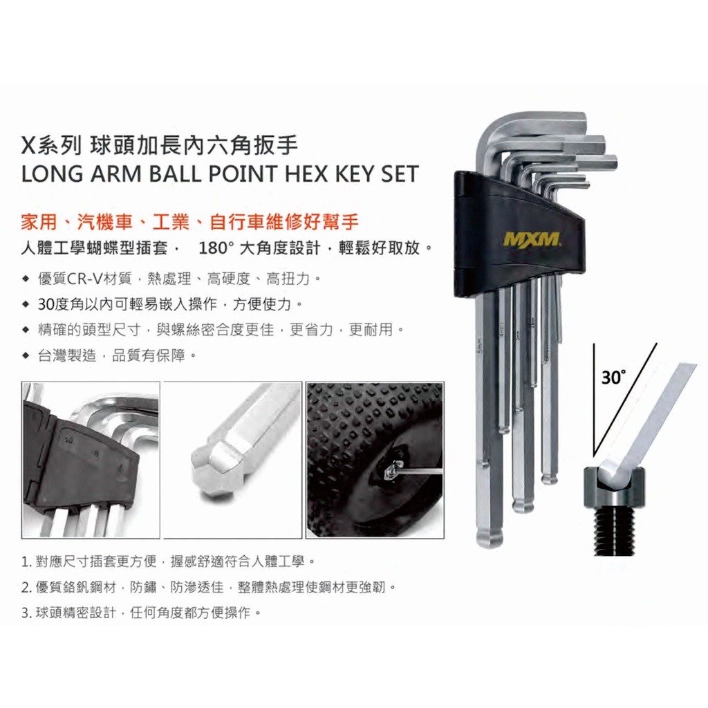 MXM 球頭加長內六角扳手 XL0901 9PC 1.5/2/2.5/3/4 實用型 9in1球頭加長 內六角扳手