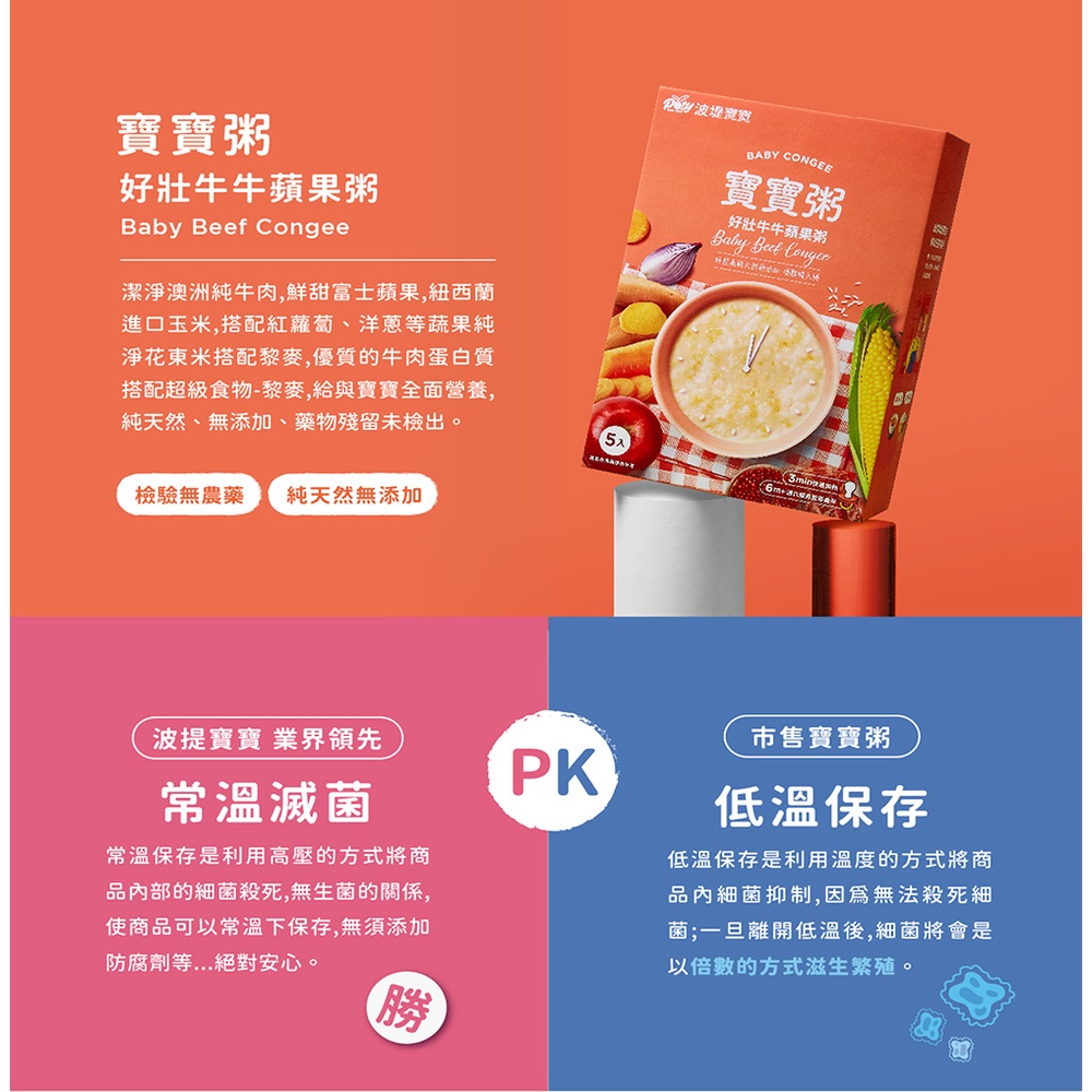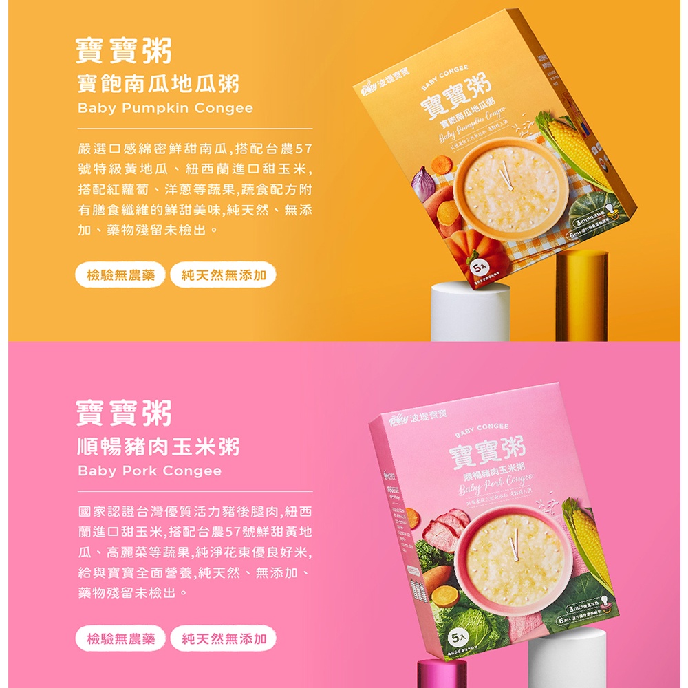 【波堤寶寶】寶寶粥 5入 寶飽南瓜地瓜/活力蔬食雞肉/順暢豬肉玉米/好壯牛牛蘋果/好鈣鮭魚昆布 滴雞精入粥
