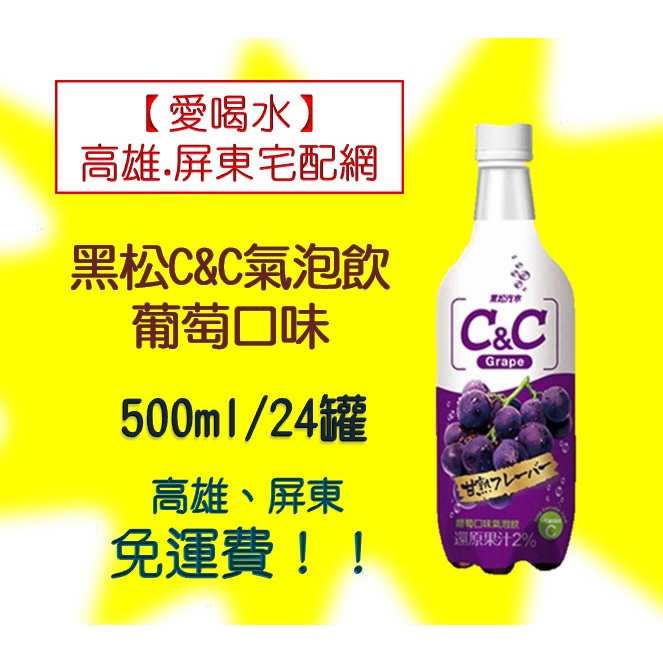 黑松c&c氣泡飲葡萄口味500ml/24入(1箱620元未稅)高雄市(任選3箱)屏東市(任選5箱)免運費配送到府貨到付款
