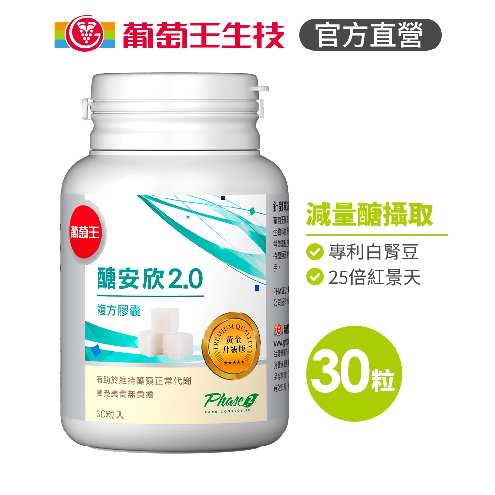 葡萄王官方直營 醣安欣2.0 30粒 (專利白腎豆 紅景天 鉻)