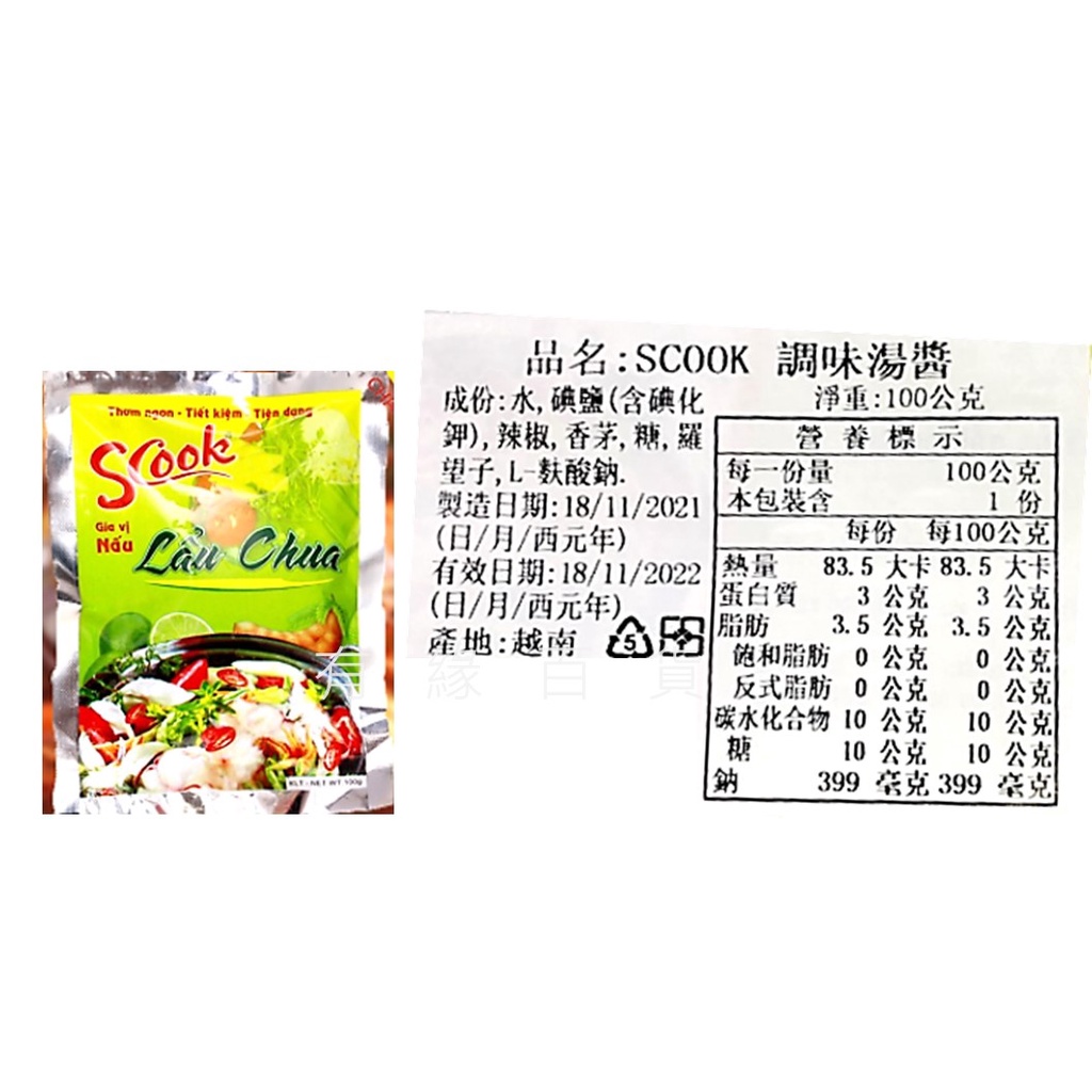 越南 SCOOK湯底(1B5-3) 越南火鍋調理包 湯底 火鍋湯底 調味包 LẨU THÁI / LẨU CHUA