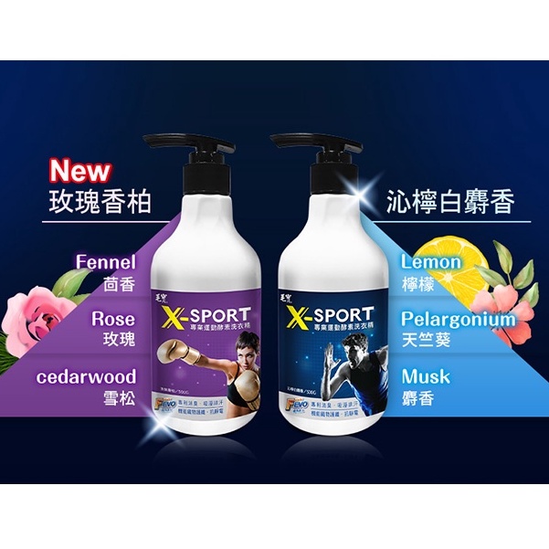MaoBao2毛寶 運動衣物專用X-sport專業運動酵素洗衣精(沁檸白麝香+玫瑰香柏)淨極勁運動洗衣精 500ml/瓶