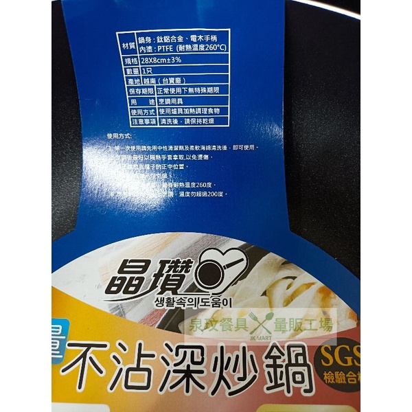 //泉玟餐具// 晶瓚 輕量不沾深炒鍋28cm 平底鍋 深炒鍋 炒鍋