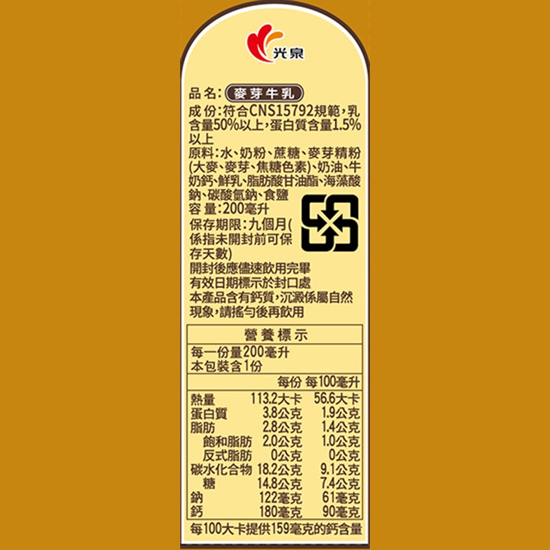 光泉麥芽牛乳[箱購]200ml毫升 x 24【家樂福】